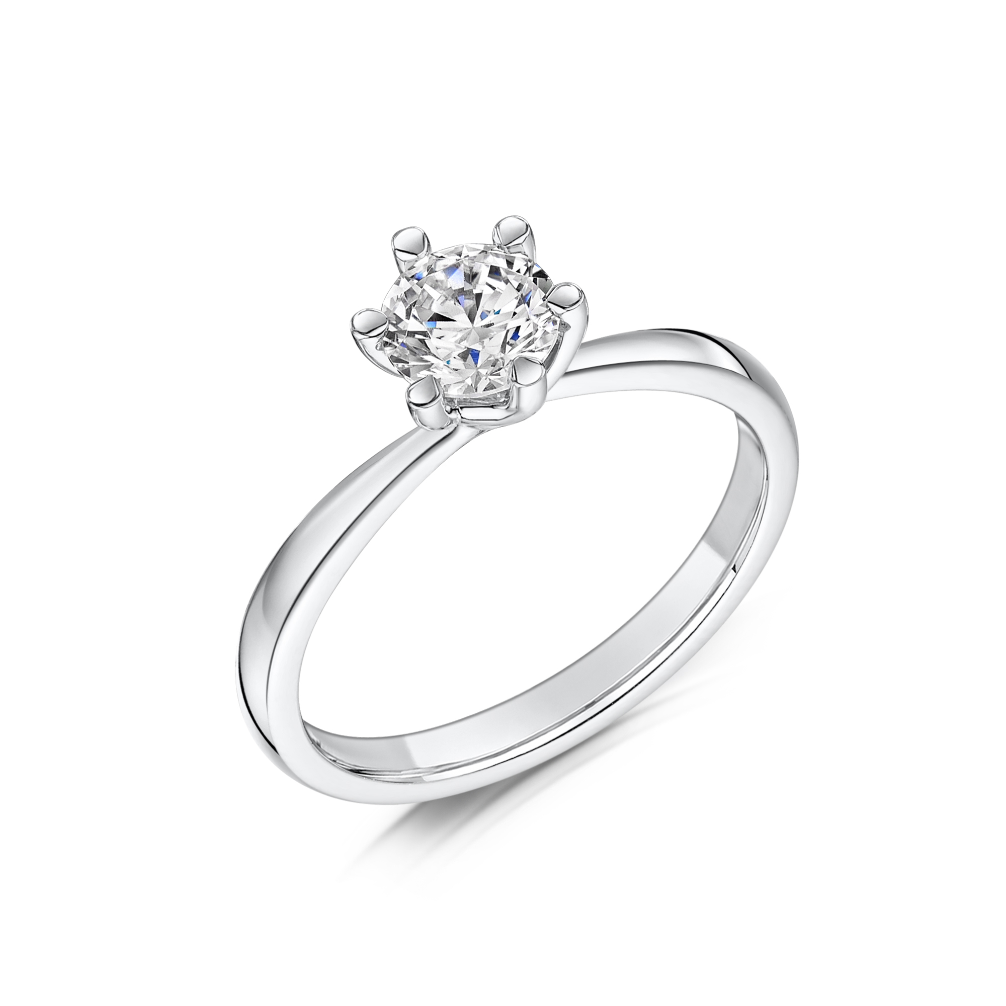 Solitaire Diamond Ring With A Round Brilliant Rounded Stone On A Rounded Tapered Shank